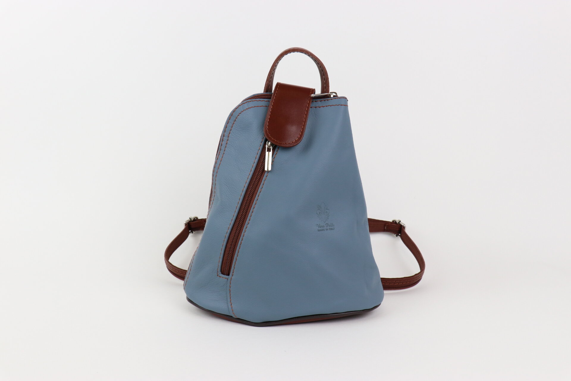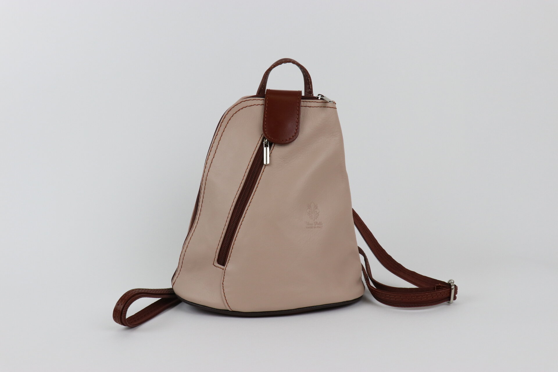 Our Leather Backpack is meticulously crafted in Italy to elevate your style and enhance your everyday adventures. It features a top zip closure and a convenient grab. The detachable and adjustable zipped shoulder straps allow you to wear it comfortably as a backpack or transform it into a chic handbag. Discover the perfect balance between style and functionality with the addition of a front zipped pocket, providing quick access to your essentials on the go. Inside, an internal zipped pocket ensures secure storage for valuables, keeping them within reach while maintaining organization. The fully lined interior exudes a delightful backdrop for your belongings. Every detail is carefully considered, ensuring both durability and aesthetic appeal.