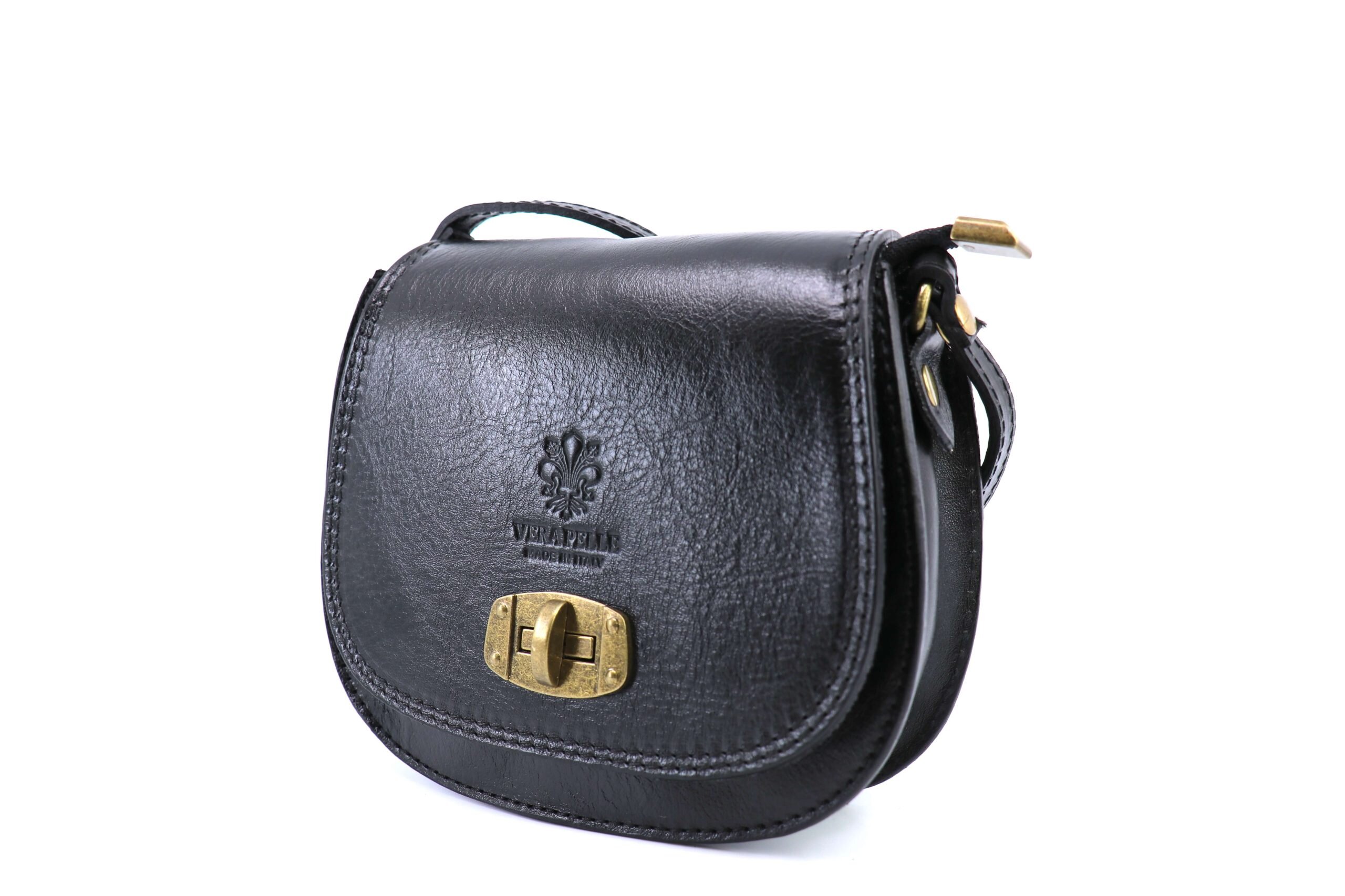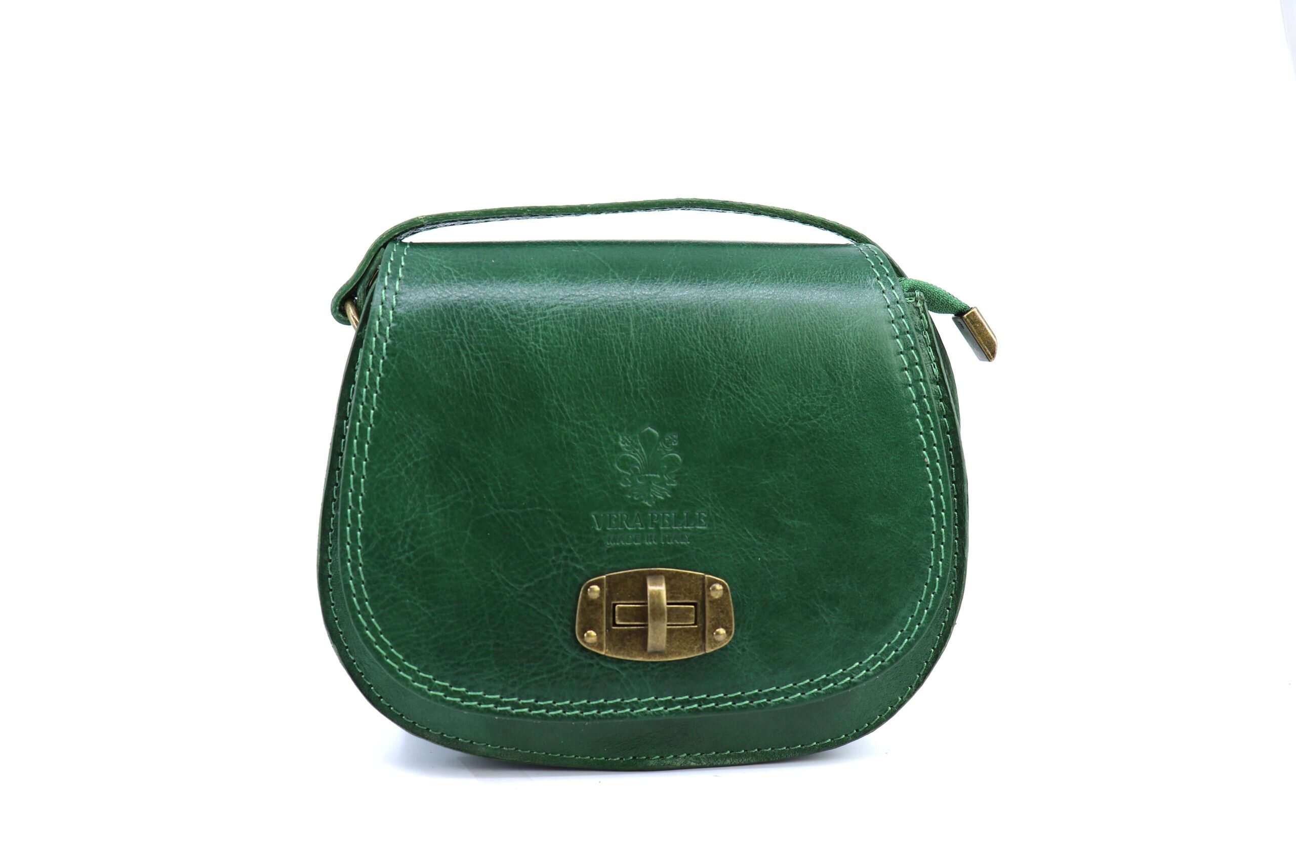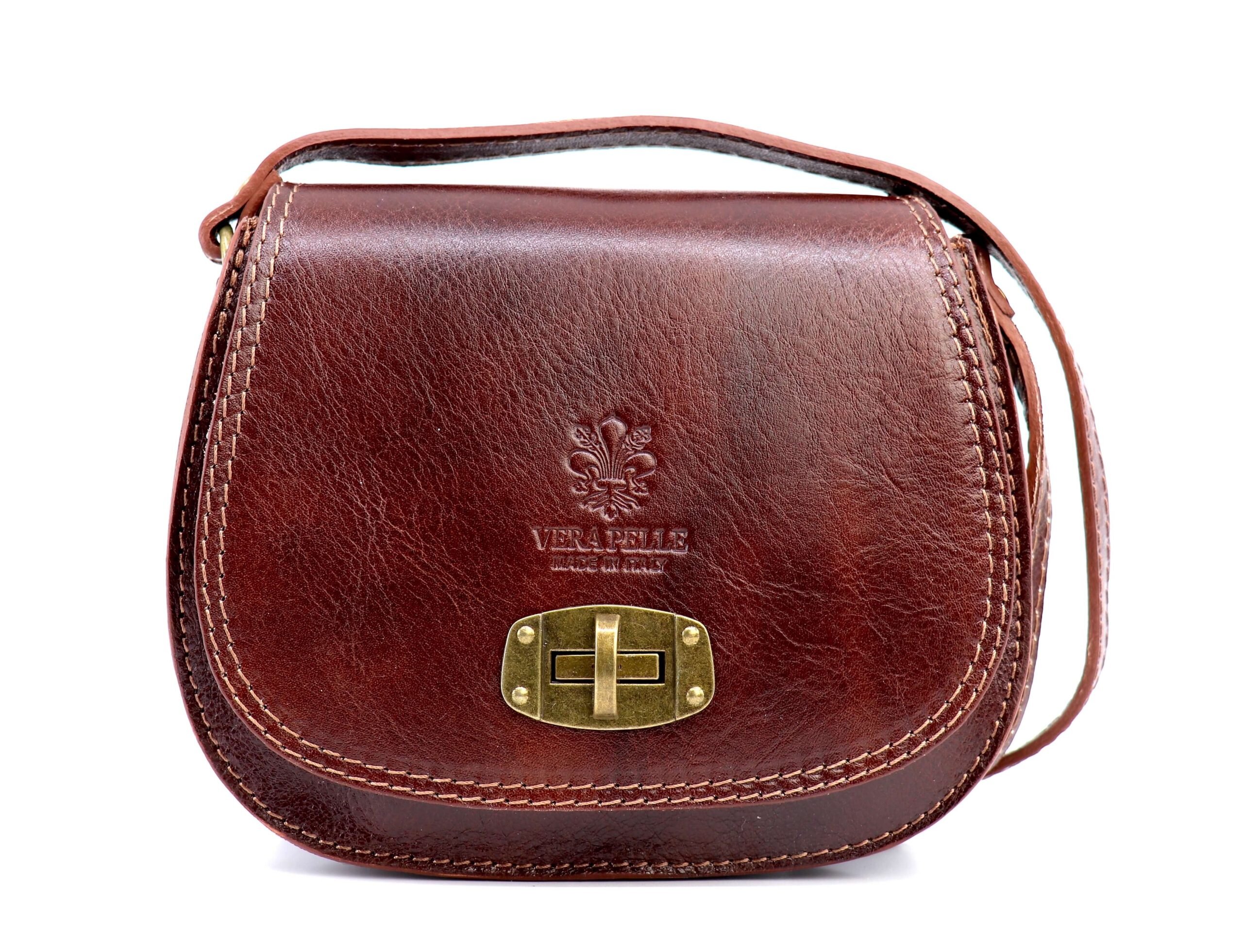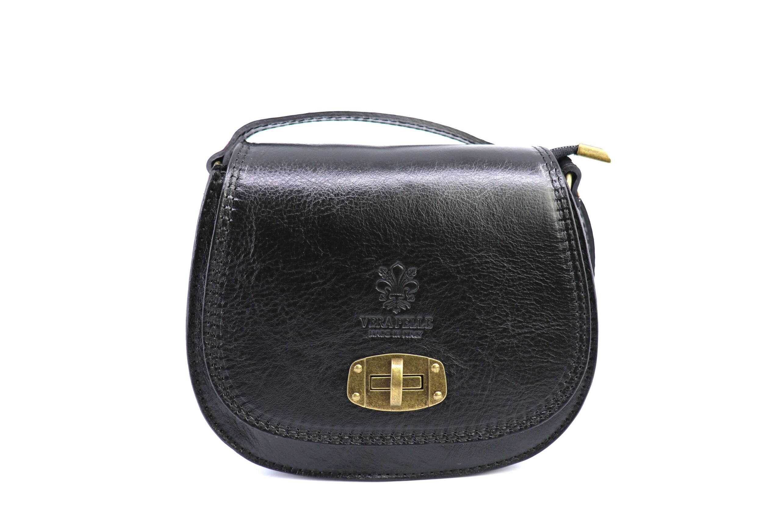 Genuine leather crossbody bag with a cardholder, zipper closure, twist lock and an adjustable strap. Available in a range of colours.